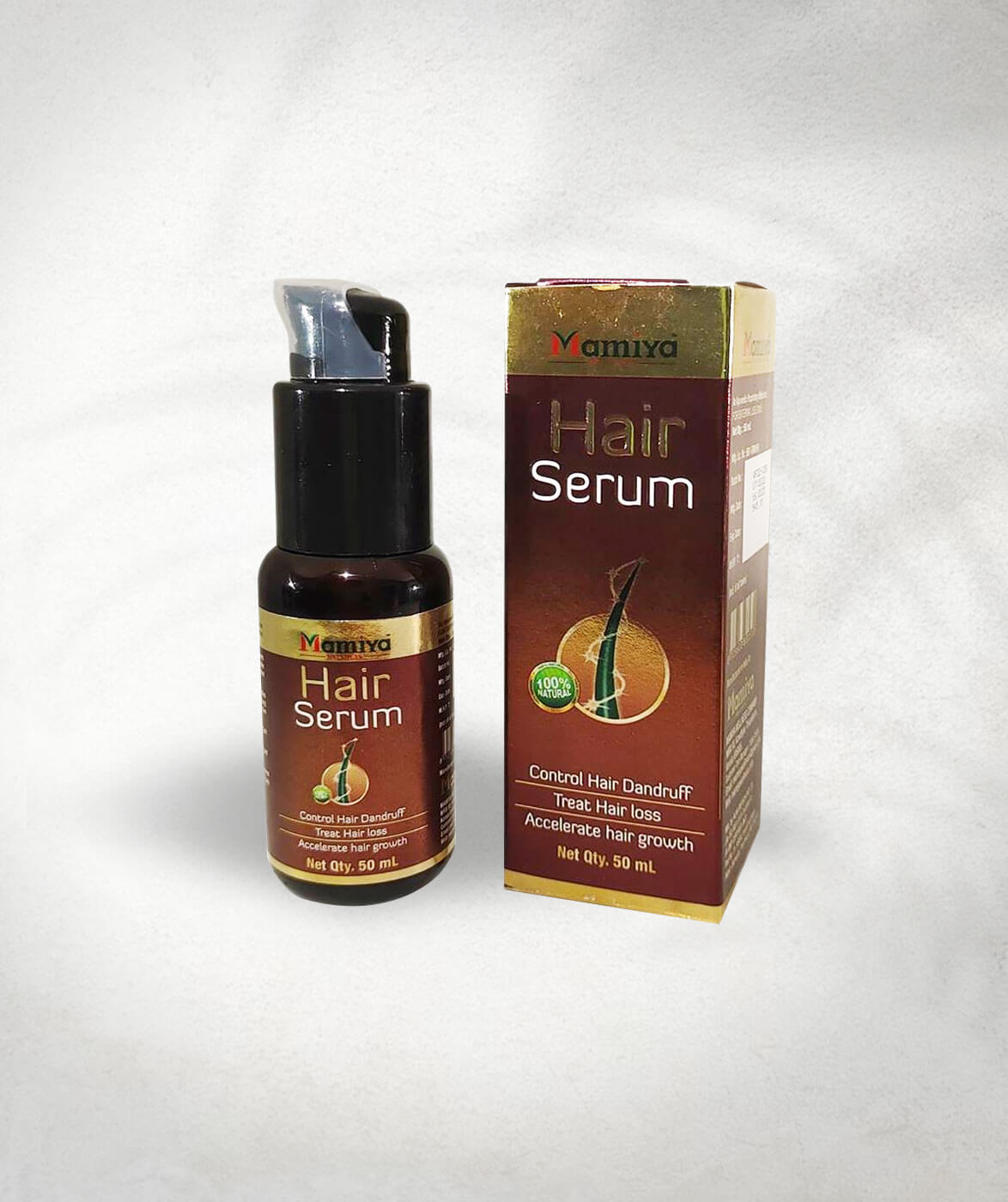 - Mamiya Hair Serum contains five natural oils like Lavender Oil, Agran Oil, Tea Tree Oil, Groundnut Oil and Chamomile Oil which helps in treating various hair problems.